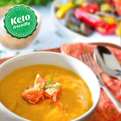 Our first ever soup! Cauliflower soup!! Super low in carbs, and yet high in vitamin-B & Fiber. Along with the sous-vide honey glazed garlic chicken, salad & baked roots. It is definitely a 5 stars healthy menu!