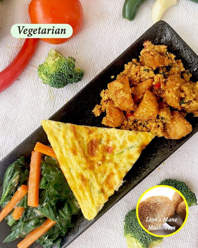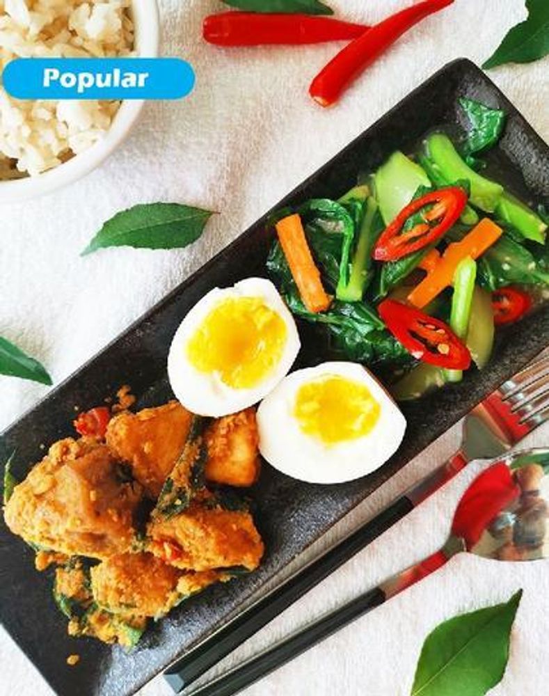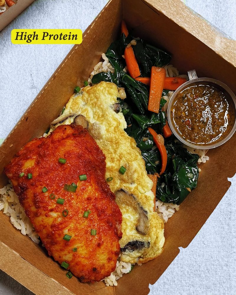 This curry leaf butter chicken rice with its aroma of curry leaves is appetizing, yet healthy. It comes with Japanese silky toufu, fried eggs, cherry tomatoes and brown rice, which makes it a perfect lunch or dinner for you!
