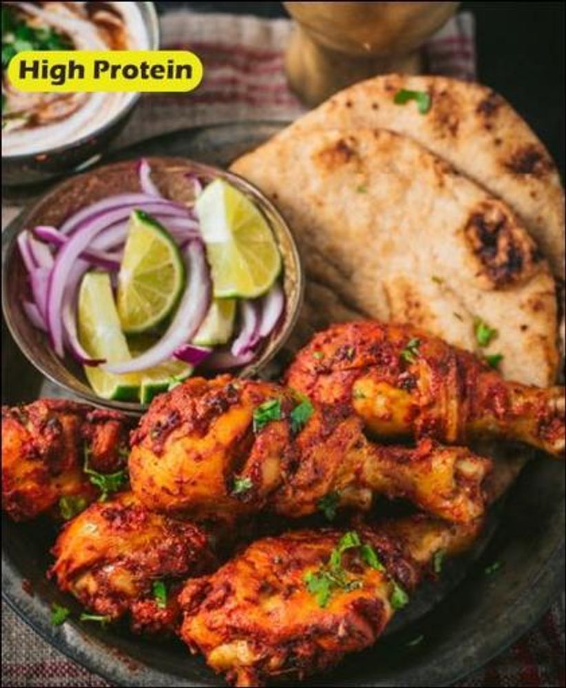 Our oven slow roasted Tandoori whole leg chicken serves wtih home-made lime-yogurt sauce not only provides you protein needed for the meal and also brings an amazing unique taste! You will definitely want it more! Let's try it today!